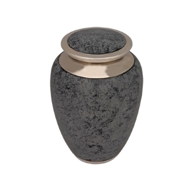The 7" Pastel Charcoal Urn is an attractive urn with a pastel charcoal background and polished silver bands, to the top, neck and bottom of the urn. This Urn measures 7" high. It is also available in 11" and as a matching keepsake. It has a screw top lid to secure the contents.